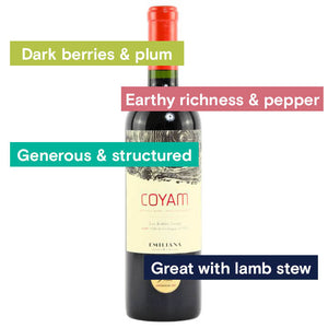 An organic wine icon named after the oak forests which surround Emiliana's Colchagua home, Los Robles. Coyam is a field blend of their best grape selection. The rest of the blend evolves each year but Carménère is the predominant profile. A nose of the very classically leafy Carménère and Cabernet family with some silky graphite tannins. Coyam gets fresher, brighter and more relevant every year, while remaining generous and structured. This years wine is a bold, harmonious blend with rich flavors of dark berries, plum, and a hint of black pepper from the larger portion of Syrah. There's a nice earthiness and a touch of oak, giving it a smooth, lingering finish.
