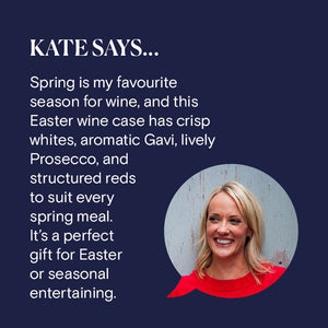 "Spring is my favourite season for wine, and this Easter wine case has everything you need. Crisp whites, aromatic Gavi, lively Prosecco, and structured reds to suit every spring meal. The included tasting notes card makes pairing simple, and it’s a perfect gift for Easter or seasonal entertaining."