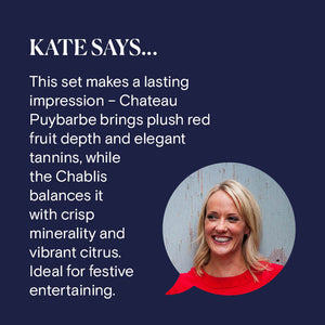 “This set makes a lasting impression – Chateau Puybarbe brings plush red fruit depth and elegant tannins, while the Chablis balances it with crisp minerality and vibrant citrus. Ideal for festive entertaining, this duo is a stylish and thoughtful choice for any wine lover looking for Christmas wines that really stand out.”