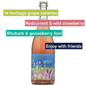 We're very happy to have secured a limited amount of the latest vintage of this exciting new pét-nat wine from (Master of Wine) Tim Wildman's Lost in a Field project. The wine is a blend of 14 heritage grape varieties from vineyards in five English counties. With this fruit they have created a brightly coloured, naturally hazy sparkling wine with exotic aromas of red current and wild strawberry lead to a featherlight body and a gentle mousse that is soft and foaming with creamy flavours of rhubarb and gooseberry fool. Fresh as a dew-picked-daisy, perfect summer sipping, drink the rainbow! Fruity, fault free, zero sulphur English pét-nat made from heritage grape varieties from old vines.
