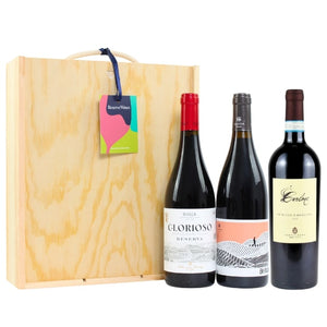 Here’s a gift for those who love their reds big, bold and full of character. Presented in a smart wooden gift pack, this trio brings together three of our most popular premium red wines. You’ll travel from the sun-soaked vineyards of Puglia with its deeply flavoured Primitivo, to the classic elegance of Rioja Reserva, and on to the rich yet modern style of the Languedoc. These are wines with real presence – layered with flavour, wonderfully food-friendly, and perfect to share at the table. Whether it’s a birthday, an anniversary, or a thoughtful wine Christmas gift, this set makes a memorable impression.