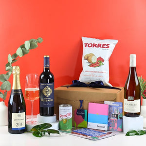 Bring the party to the table with this beautifully curated feast of fine wines, savoury delights and standout chocolates. Whether you’re hosting a laid-back dinner, sending a gift to impress, or planning the ultimate night in, this hamper delivers big on flavour and good times. With three brilliant wines (an elegant Chablis, a classy Bordeaux and a celebratory Champagne), top-notch snacks and indulgent chocolate, it’s all set for grazing, sharing, or slow, delicious snacking. It makes a spectacular choice if you’re looking for thoughtful wine Christmas gifts or a festive spread with the best Christmas wine selection built in.