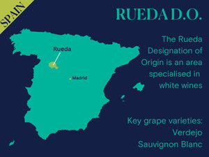 Here we have three wines that showcase the wonderful, characterful wines made using the native Verdejo from Rueda. Rueda is a small region in the North West of Spain, 150 kilometers from Madrid, resting on the southern slopes against the Duero river, that is responsible for some of the best white wines that Spain has to offer. Verdejo (pronounced Vurr-day-ho) is a grape variety that typically produces wines that are very aromatic and elegant with fruity aromas that include lemon, lime, satsuma, melon with grassy herbaceous notes that can include aniseed and fennel notes.
