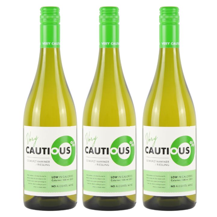 Stock Up and Save with 3 bottles of The Very Cautious One, Alcohol Free, Gewurztraminer-Riesling