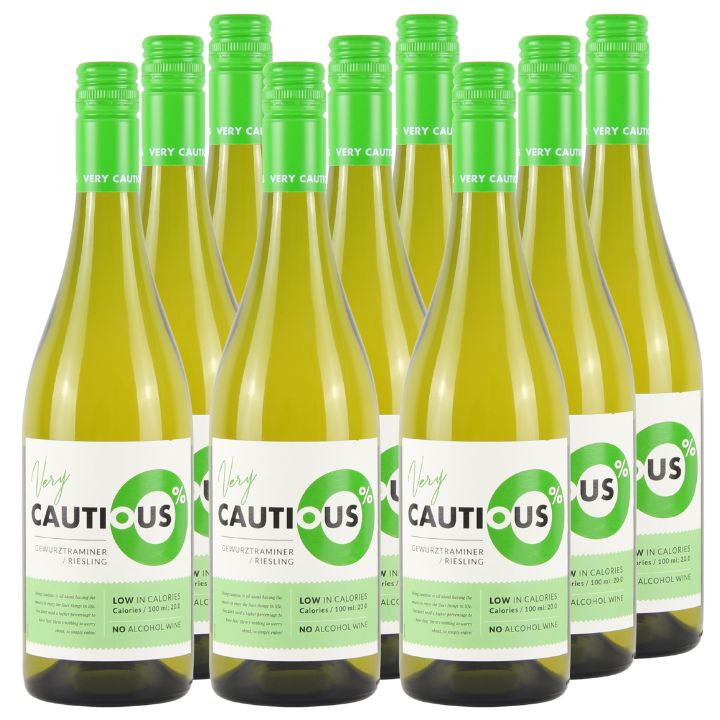 Stock Up and Save with 9 bottles of The Very Cautious One, Alcohol Free, Gewurztraminer-Riesling