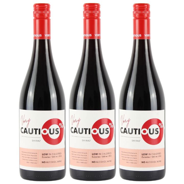 Stock up and Save with 3 bottles The Very Cautious One, Alcohol Free, Shiraz