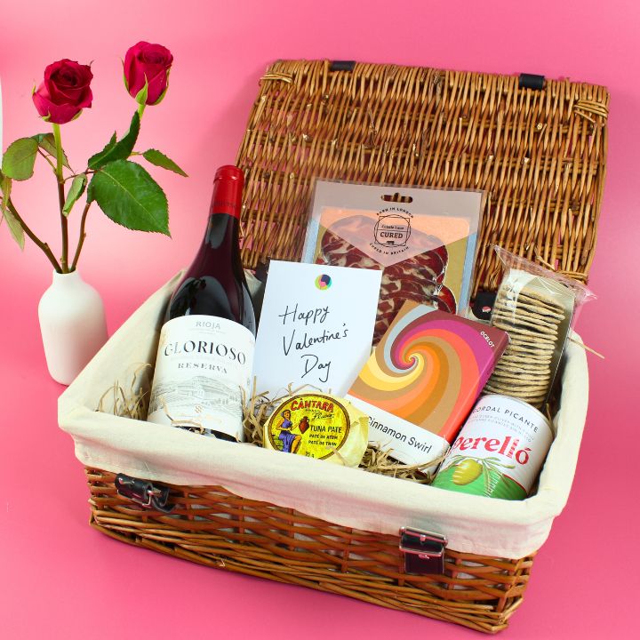 Planning a cosy Valentine's night in? Treat your special someone to premium snacks paired with their favourite wine, all beautifully presented in our Valentine's hamper.