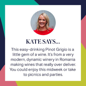 "This easy-drinking Pinot Grigio is a little gem of a wine. From a very modern, forward-thinking winery in Romania, it’s fresh, fun, and perfect for midweek evenings, picnics, or relaxed gatherings."