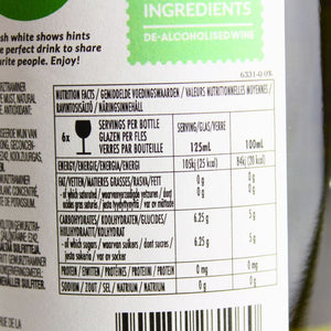 Alcohol Free Gewurztraminer Riesling Wine from Australian Origin, Concentrated White Grape Must, Natural Flavours, Preservative: E242, Carbon Dioxide, Potassium Sorbate, Antioxidant: Ascorbic Acid