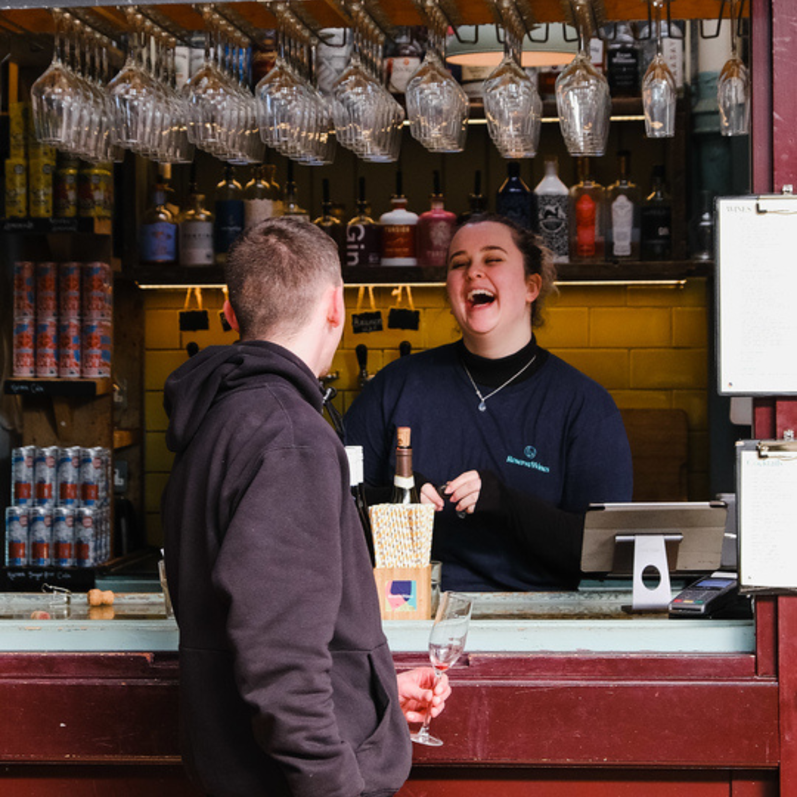 Our Altrincham hybrid wine shop is located within the lively Altrincham Market, a covered food hall specialising in independent traders. As well as a small wine shop, we also have a wine bar here where you can drink in.