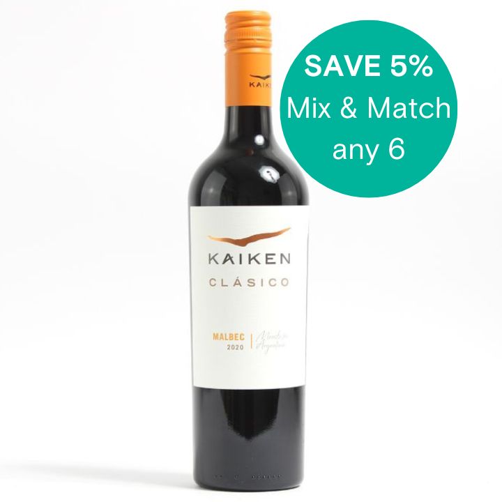 Kaiken Malbec Clásico 2022 is a textbook Mendoza Malbec - bursting with ripe blackberries, juicy plums, and a lick of dark chocolate and spice from a gentle touch of oak. It’s smooth, full-bodied, and velvety, with soft tannins that make it dangerously easy to drink. There’s a little coffee and mocha in there too, adding richness without ever getting heavy. Think silky fruit, a savoury edge, and a fresh finish that keeps you coming back for more.