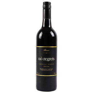 No Regrets Cabernet Merlot is a vibrant, medium- to full-bodied red that balances plush fruit with elegant structure. It opens with aromas of ripe blackberries, red cherries, and cassis, complemented by subtle chocolatey oak and gentle spice. On the palate, the Cabernet Sauvignon and Merlot blend delivers a juicy core of berry fruit, soft tannins, and refined French oak notes, finishing with a smooth, lingering elegance. This Margaret River red is a sophisticated yet approachable wine – perfect for lovers of Bordeaux-style blends.