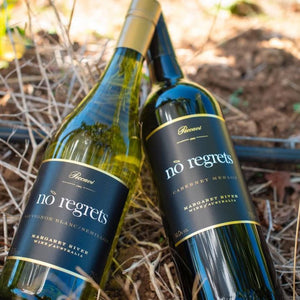 No Regrets Cabernet Merlot is a vibrant, medium- to full-bodied red that balances plush fruit with elegant structure. It opens with aromas of ripe blackberries, red cherries, and cassis, complemented by subtle chocolatey oak and gentle spice. On the palate, the Cabernet Sauvignon and Merlot blend delivers a juicy core of berry fruit, soft tannins, and refined French oak notes, finishing with a smooth, lingering elegance. This Margaret River red is a sophisticated yet approachable wine – perfect for lovers of Bordeaux-style blends.